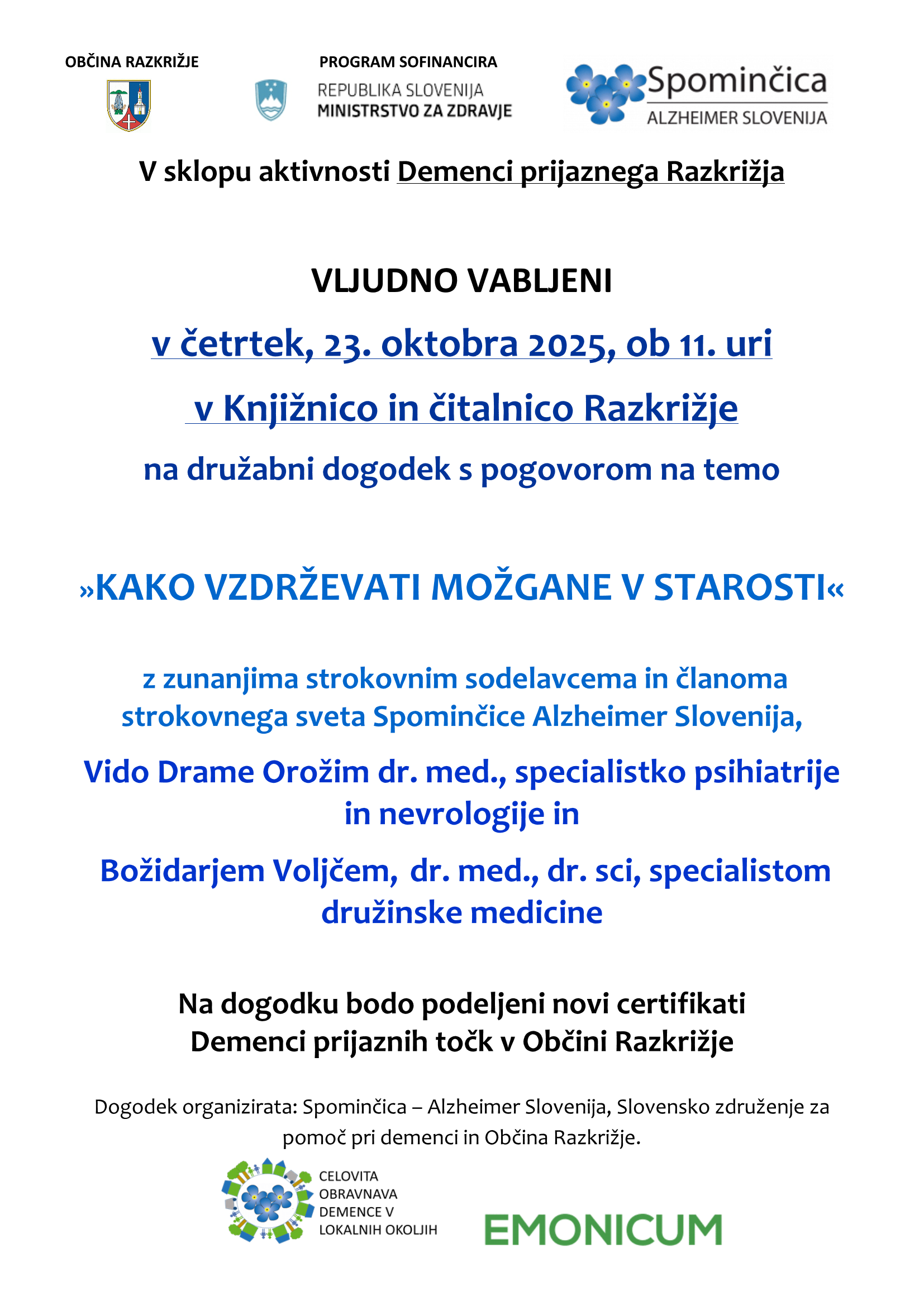 Družabni dogodek s pogovorom v Knjižnici in čitalnici Razkrižje