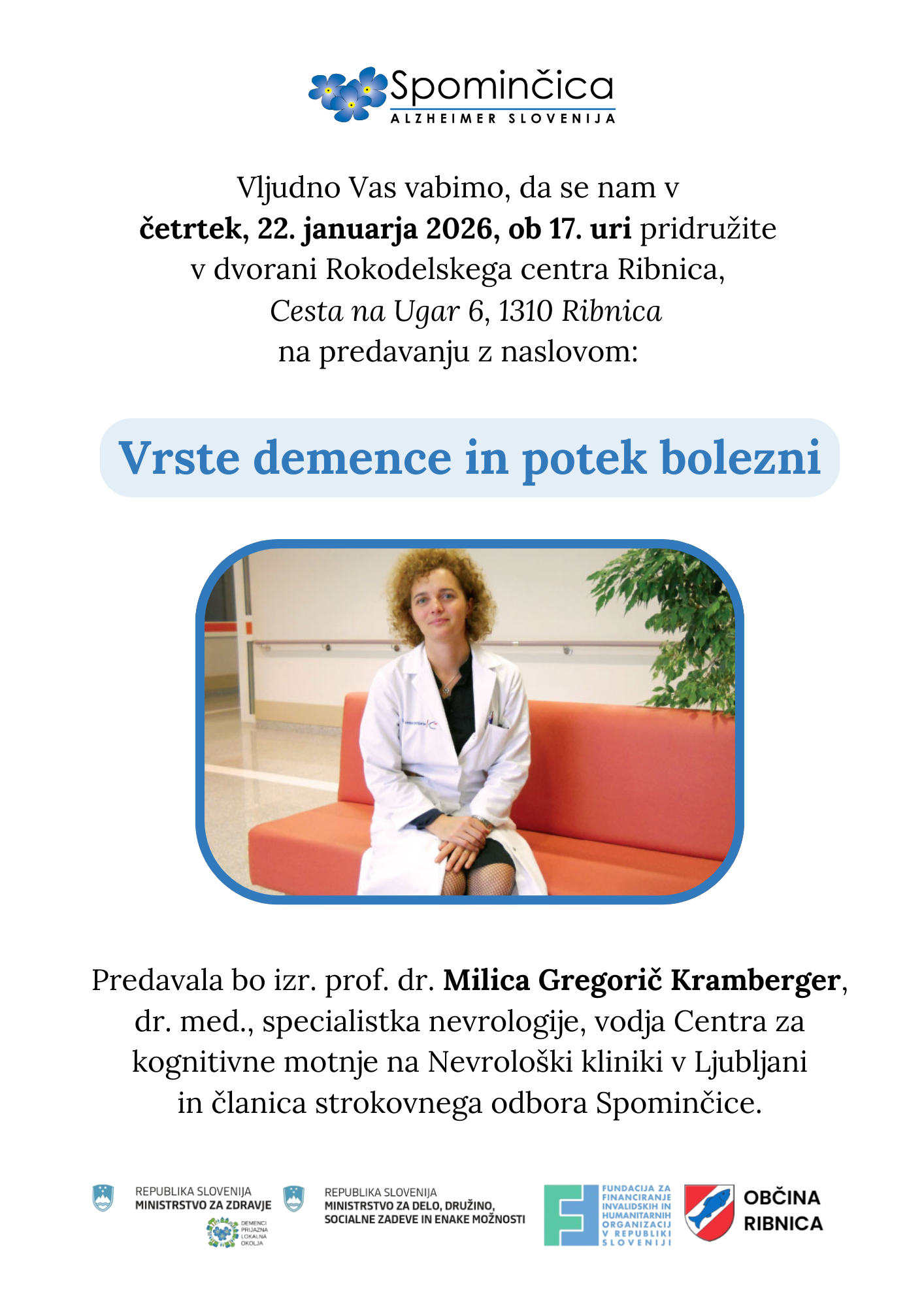 Predavanje "Vrste demence in potek bolezni" v Občini Ribnica