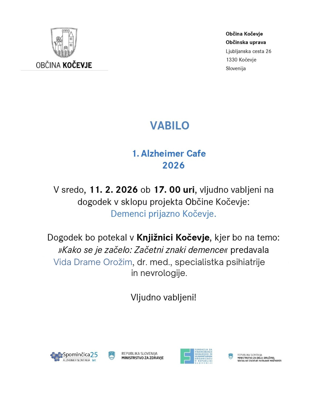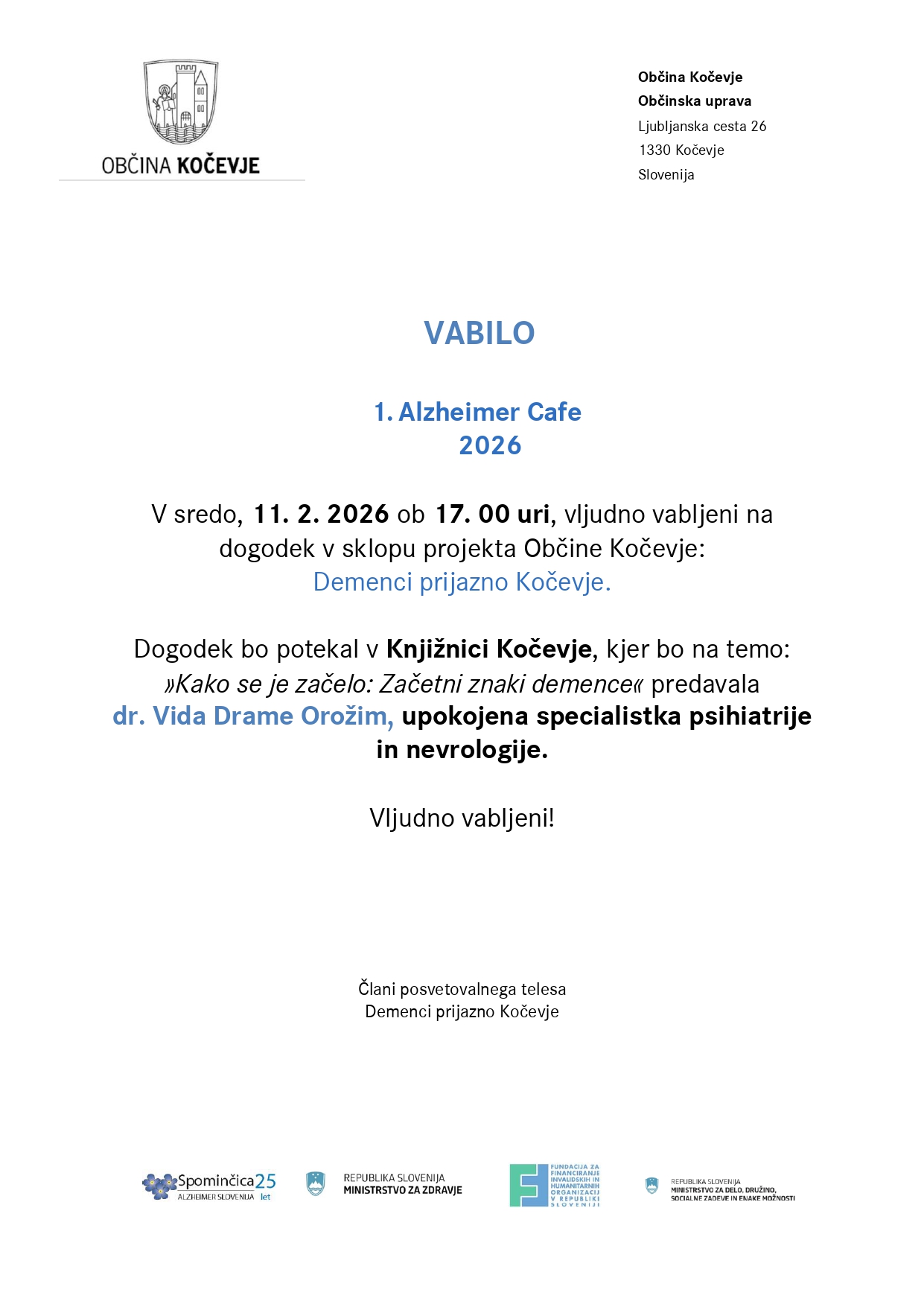 Prvi Alzheimer cafe leta 2026 v Kočevju