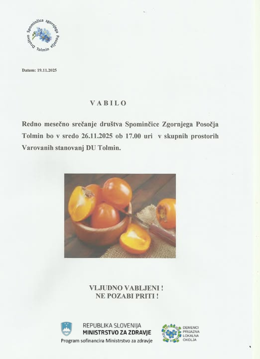 Redno mesečno srečanje Spominčice Zgornjega Posočja Tolmin, 26.11.2025