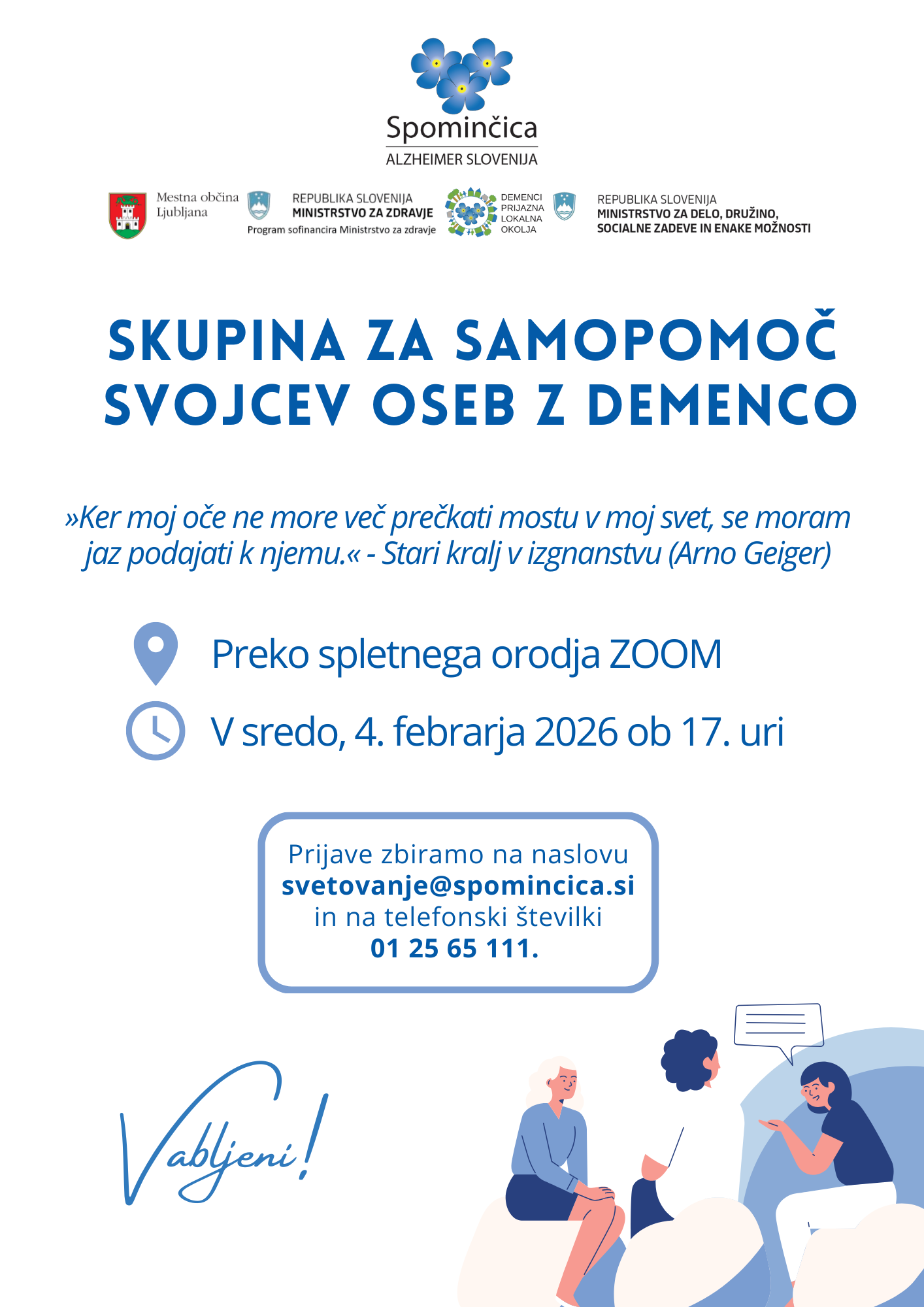 Zoom srečanje skupine za samopomoč v februarju
