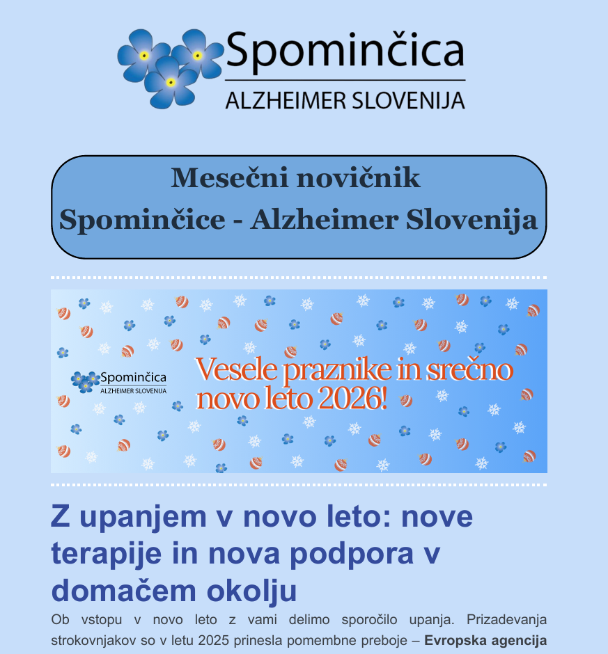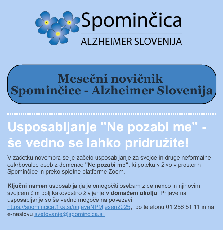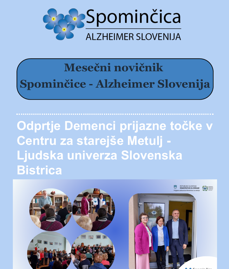 Poiščite informativna gradiva, priročnike, zloženke, glasilo Spominčica in drugo o demenci.