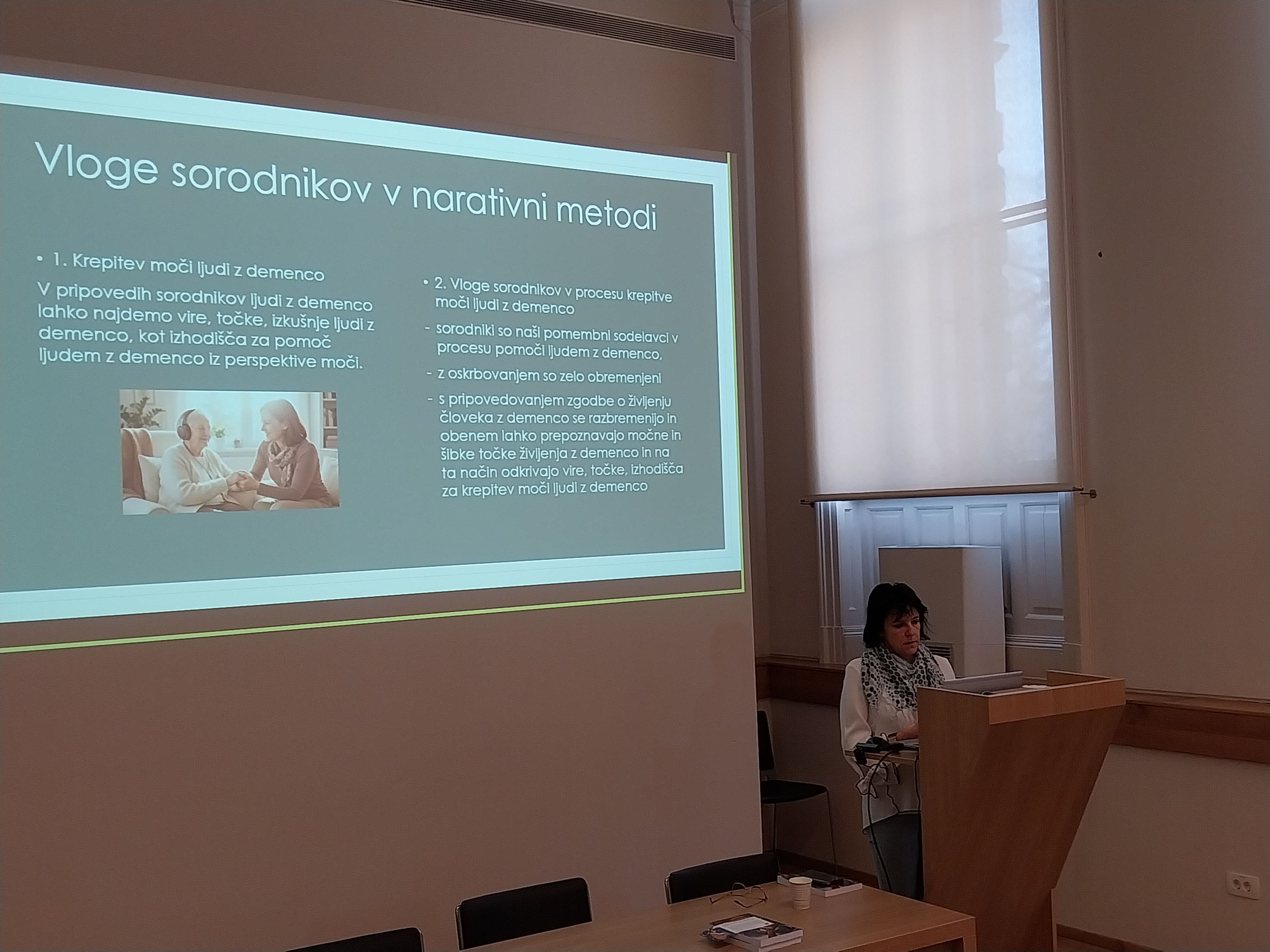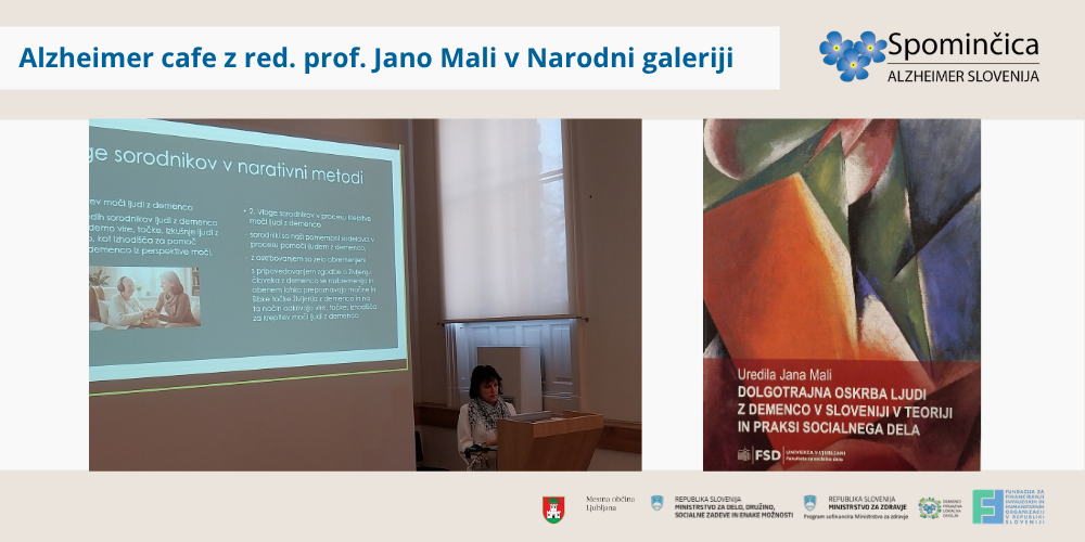 V torek, 24. marca 2026, smo Alzheimer Café v Narodni galeriji izvedli v sodelovanju z red. prof. dr. Jano Mali (Fakulteta za socialno delo, Univerza v Ljubljani). Predstavila je izsledke projekta o dolgotrajni oskrbi ljudi z demenco, ki temelji na zgodbah sorodnikov in bližnjih oskrbovalcev.