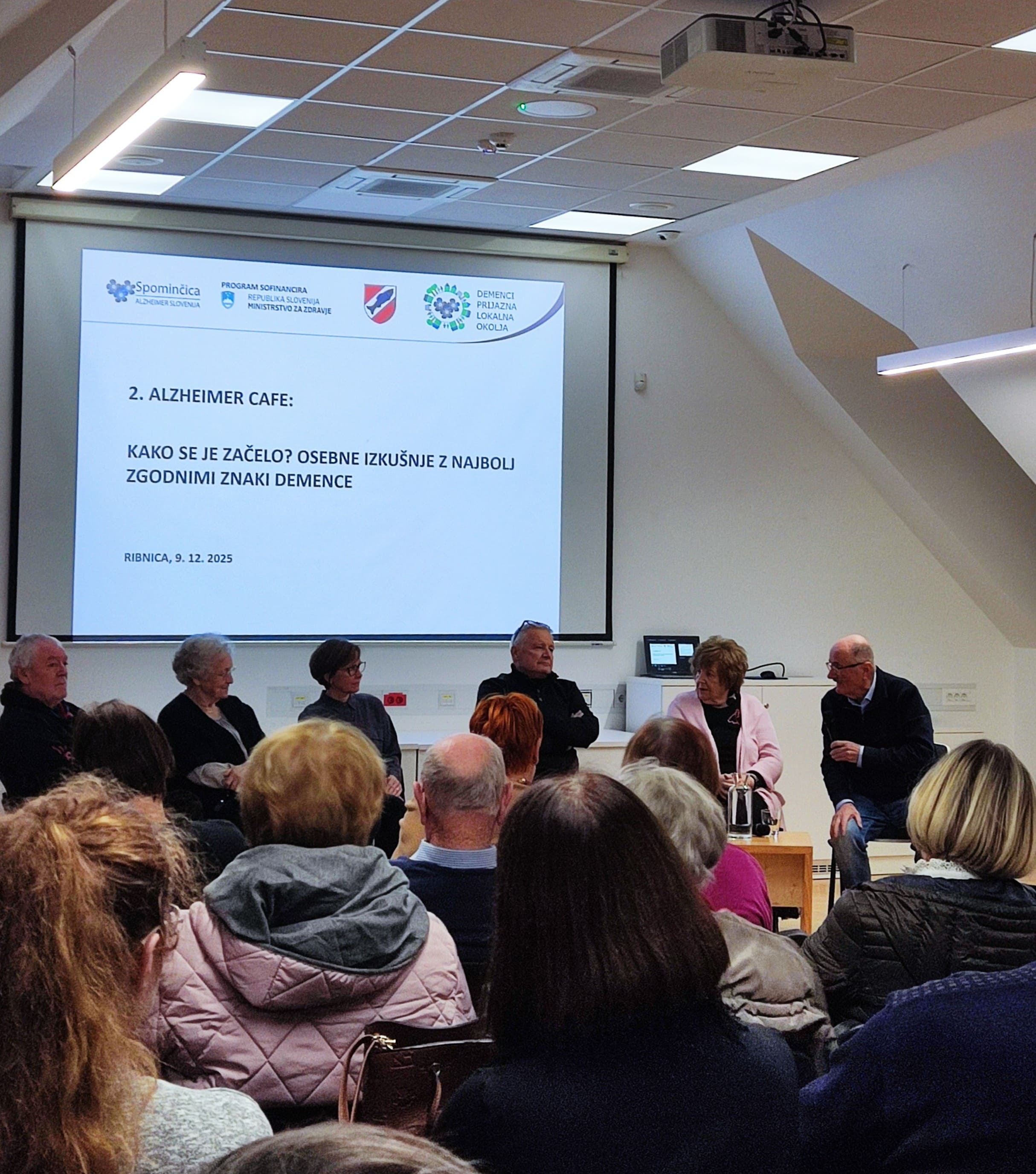 Občina Ribnica in Spominčica – Alzheimer Slovenija sta v torek, 9. decembra 2025, izvedla 2. srečanje Alzheimer Café. Dogodek je potekal v polni dvorani Rokodelskega centra Ribnica, s pričetkom ob 17. uri.