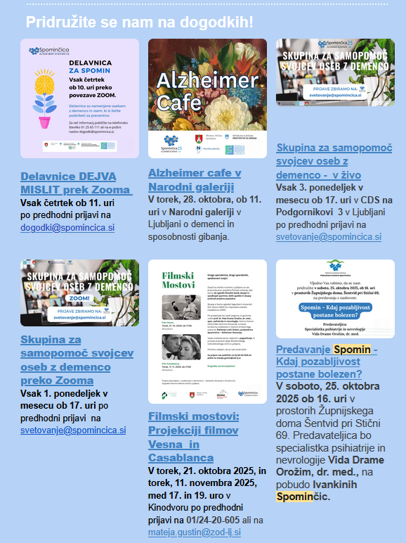 Prijave zbiramo na povezavi https://spomincica.1ka.si/prijavaNPMjesen2025, po telefonu 01 256 51 11 in na e-naslovu svetovanje@spomincica.si