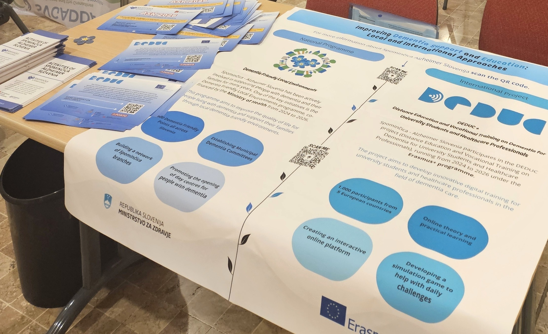 Spominčica na konferenci predstavlja projekt Osebno svetovanje v domačem okolju ter s konferenčnim posterjem še projekt »Demenci prijazna lokalna okolja« (oba sofinancira Ministrstvo za zdravje) in mednarodni projekt DEDUC, ki ga sofinancira program Erasmus+.
