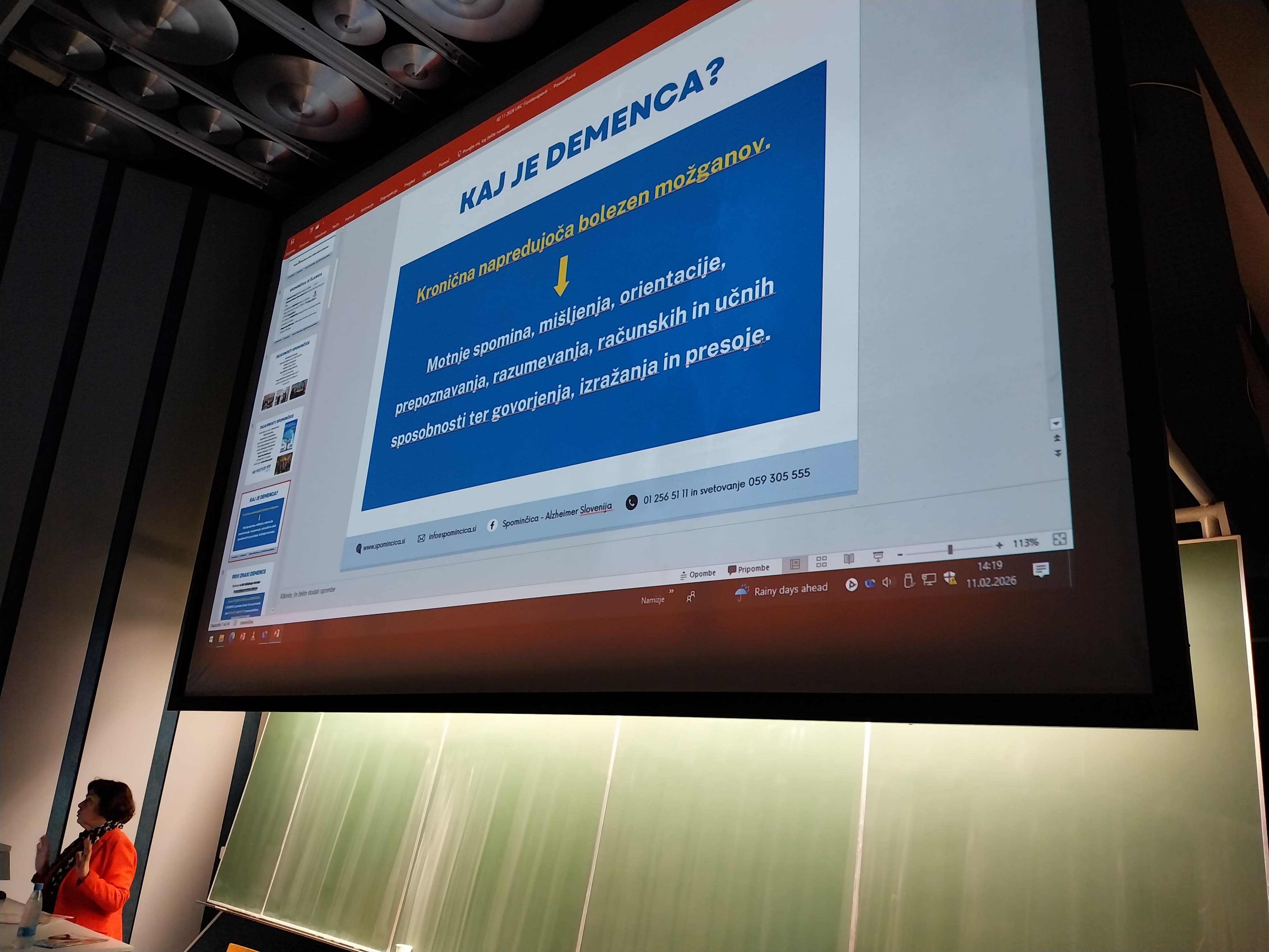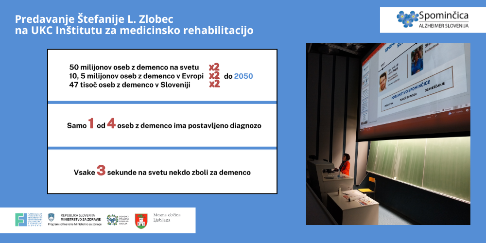 Na pobudo UKC Inštituta za medicinsko rehabilitacijo je ga. Štefanija L. Zlobec, predsednica Spominčice, v sredo, 11. februarja 2026, za zaposlene izvedla predavanje o demenci.