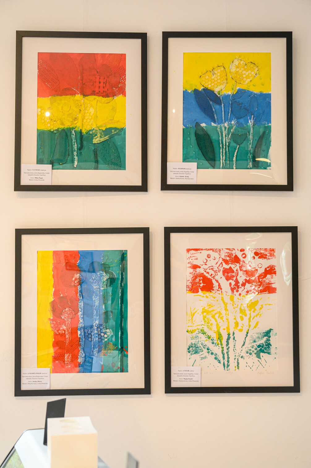 Utrinki z razstave likovnih del oseb z demenco v Hiši kranjske čebele