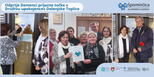 Spominčica nadaljuje s širjenjem mreže Demenci prijaznih točk (DPT). Tako smo 21. januarja 2026 slavnostno odprli novo DPT v Društvu upokojencev Dolenjske Toplice.